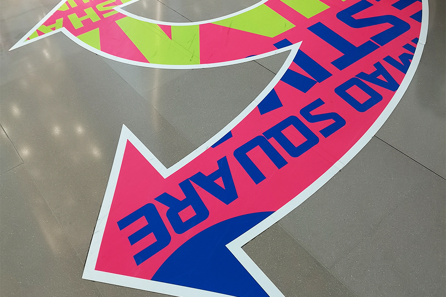 粗纹地板贴,主要适用于中长期使用的户内外地面广告宣传、警示标志等,采用半透明磨砂PVC压延膜, 透明可移除溶剂型胶水,具有耐磨、防滑的效果,主要应用于地铁站、高铁站、餐馆、博物馆、展示厅、商场等场合,